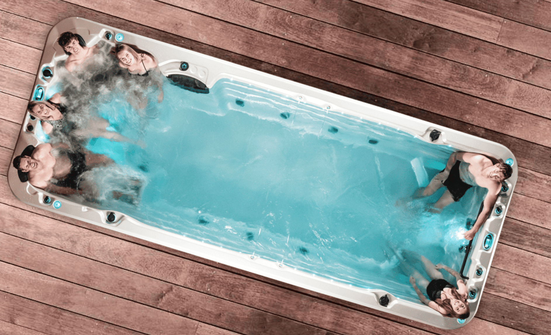 Aqualap Swim Spa — функціональний СПА-басейн для 4 дорослих із глибокою гідротерапією та простором для активного плавання. Оснащений понад 81 форсункою, ламінарними струменями, LED-підсвічуванням, Bluetooth-аудіо, ароматерапією та індивідуальним керуванням.